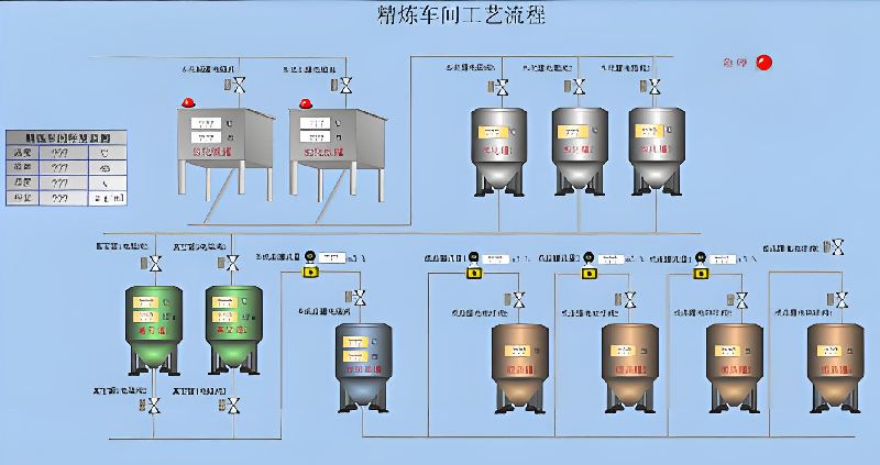精炼生产控制系统系统适用于油脂企业精炼工艺车间,包含了脱色、脱臭、脱蜡等多个工段的生产控制以及离心机等特殊单体设备的监控。在油脂生产过程中,可以实现对整个系统每个工段的自动控制,从毛油、油品计量、过程管理和记录、到罐区液位数据监控、温度信息监控,全方位提升监控力度,通过各个生产参数的调配,提高精炼出油效率。