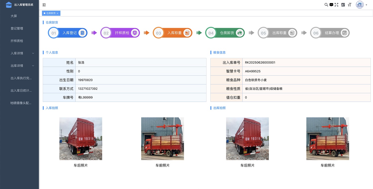 智慧粮库出入库管理系统将物联网、传感器、现场总线、防作弊等技术融为一体,利用综合集成控制软件对出入库车辆、重量、时间等信息进行保存管理,并集成到粮仓业务管理系统中。