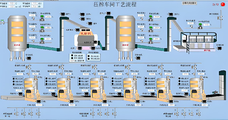 榨油生产控制系统适用于油脂企业各类榨油工艺车间,包括大豆、菜籽、花生、米糠等多种原料的不同榨油工艺生产,涵盖了预榨、浸出等多个工段的生产控制系统。在油脂生产过程中,可以实现对整个系统,每个工段的自动控制,从原料、油品计量、过程管理和记录、到罐区液位数据监控、温度信息监控及地磅数据,协助车间及工厂实现物料平衡。
